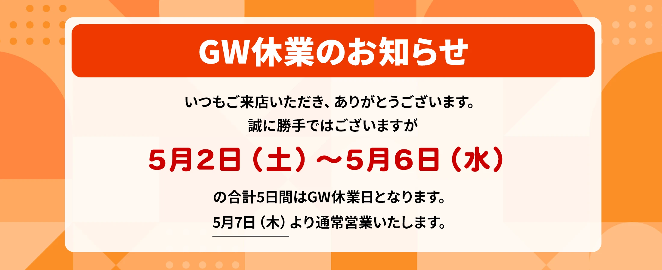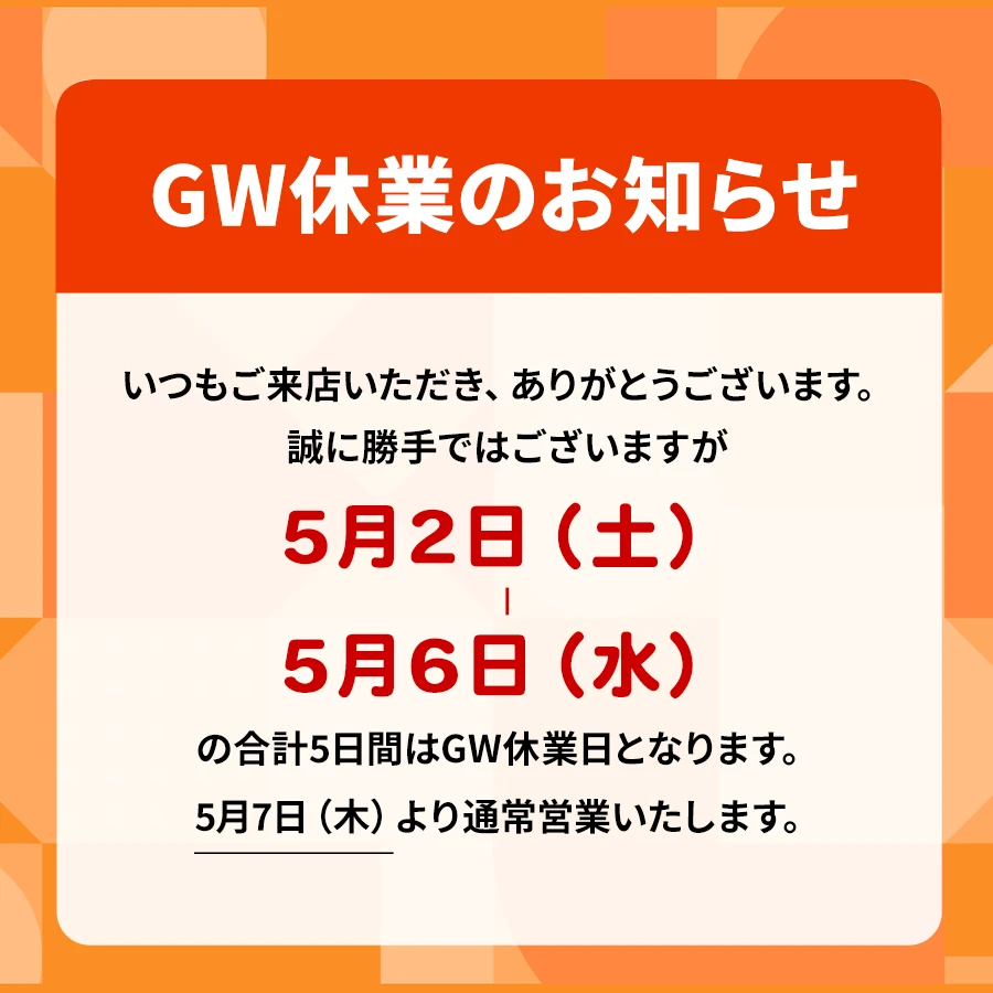 GW休業日5/2(土)~5/6(水)